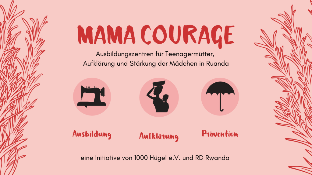 Wir – der Verein 1000 Hügel e.V. in Zusammenarbeit mit unserem lokalen Projektpartner RD Rwanda – möchten jungen Teenagermüttern eine Ausbildung als Näherin ermöglichen, damit sie in Zukunft ihre Familie auf seriöse Weise versorgen können. Parallel wird es präventiv Aufklärungsarbeit in den Dörfern geben, um zukünftige Teenagerschwangerschaften zu verhindern und begleitend dazu sollen die jungen Mädchen in ihren Rechten gestärkt werden.
