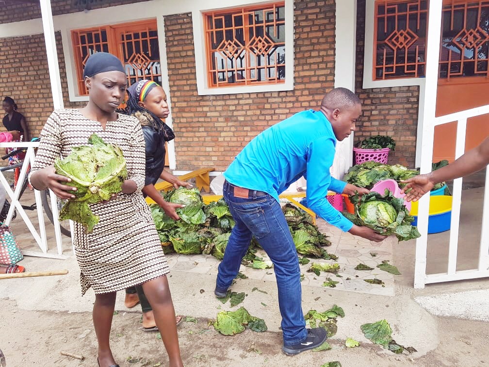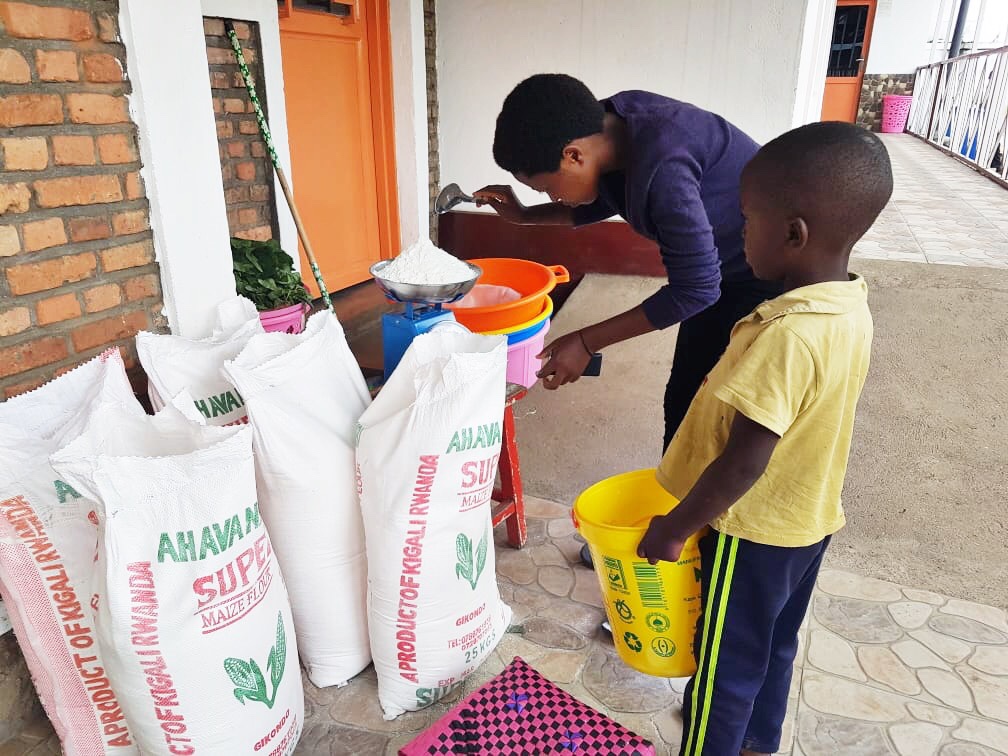 Maismehl, Seife, Kohlköpfe und Salz gab es heute auch für 75 bedürftige Kinder in Gisenyi.