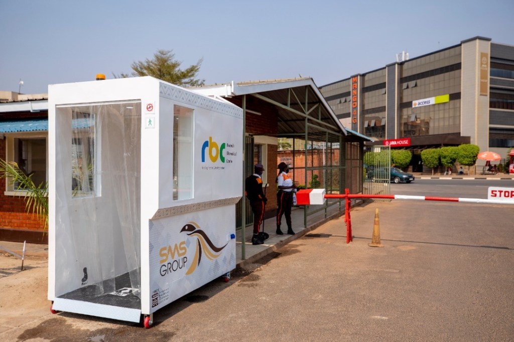 In Kigali wird eine neue Hygieneschleuse getestet, die nicht nur desinfiziert, sondern auch die Temperatur misst.