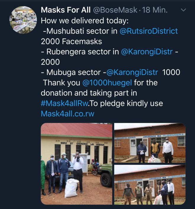 Die lokale Initiative “Masks4AllinRw” – also Masken für Alle in Ruanda – sorgt für eine reibungslose Verteilung und Organisation.
