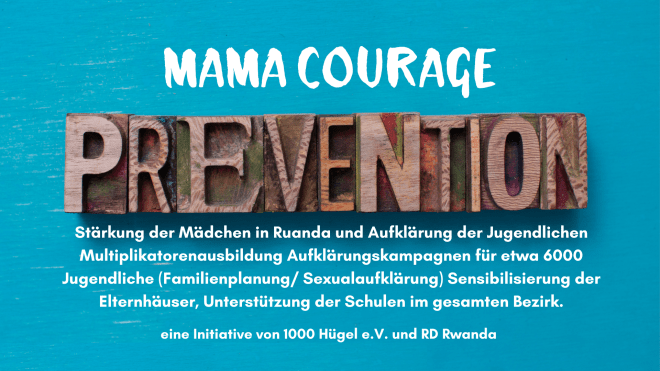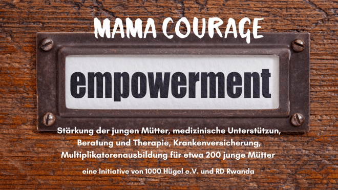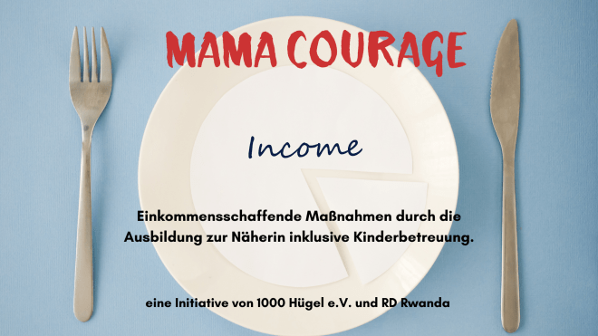Mit dem Projekt „Mama Courage“ soll die Ausbildung junger Frauen gefördert werden, ihre Kompetenzen gestärkt und ihnen Hilfe zu Selbstständigkeit gegeben werden. Mit der Möglichkeit zur Ausbildung bietet sich ihnen eine Chance, auf gute und ehrliche Weise den Lebensunterhalt für ihre Kinder zu verdienen. Es werden dadurch Arbeitsplätze insbesondere für Frauen in ländlichen Gebieten geschaffen. Ziel ist es, die Absolventinnen so zu qualifizieren, dass sie eine Anstellung finden oder in die Lage versetzt werden, sich selbständig zu machen. Denkbar wäre auch spätere Kooperativen zu gründen bzw. bei der Gründung zu unterstützen. An dem Ausbildungszentrun finden alleinerziehende junge Mädchen, welche die Schule abgebrochen haben, eine tatkräftige Unterstützung. Durch die Vermittlung von unternehmerischem Grundwissen werden die Frauen in ländlichen Regionen gestärkt und befähigt ein Mikrounternehmen starten können. Die Arbeit in handwerklichen Berufen stellt für junge Mütter in Ruanda eine der wenigen Möglichkeiten dar, ihre Familien auf seriöse Weise zu ernähren und ihr Leben selbst zu gestalten. Der Weg in die Prostitution oder ein Leben auf der Straße gehört zur realistischen Zukunftsaussicht, wenn sie keine Unterstützung bekommen.