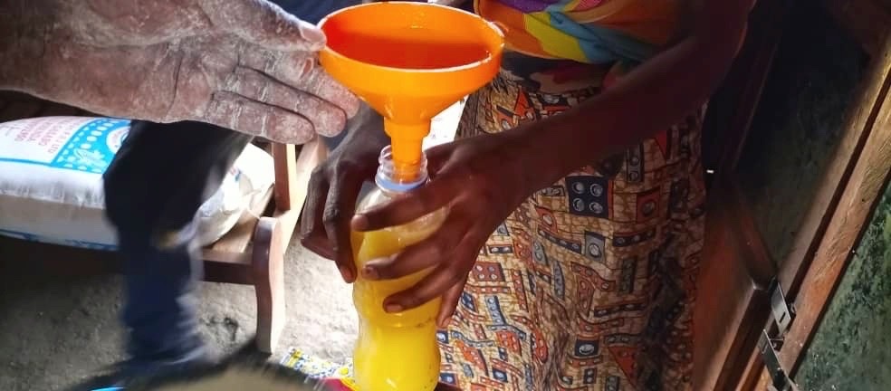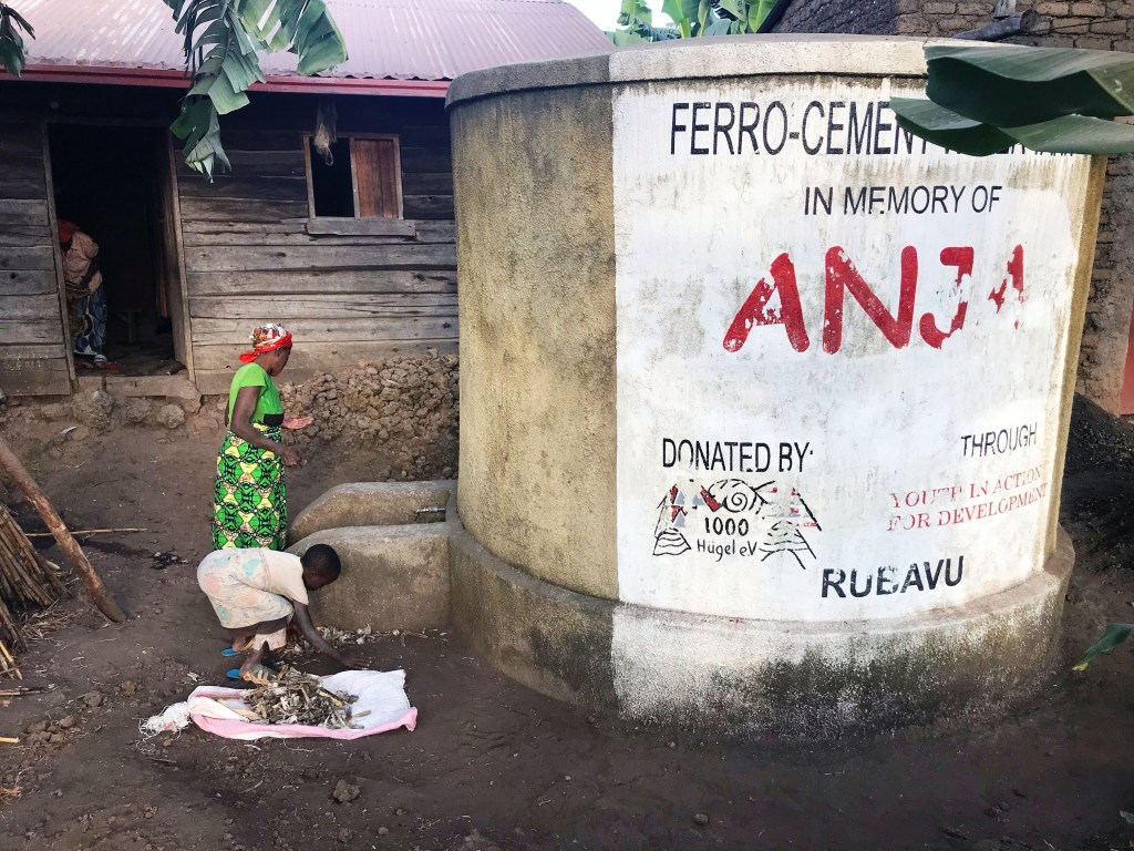 Ein geländegängiges Auto ist ein Muss. Am Besten geeignet ist ein Pick-Up, um möglichst viele Säcke voll mit Nahrungsmitteln transportieren zu können. Unser Auto ist gut gefüllt mit Maismehl, Bohnen, Reis, Öl und Seife. Wir sind auf dem Weg zu den Batwa in der Grenzregionen Ruandas zum Kongo. In dieser Community stehen unsere 5 Wassertanks. Ein kurzer Check an einigen der Tanks, ob das Wasser läuft – tut es! Weiter geht’s die Piste entlang links rechts, immer weiter, ich bin inzwischen komplett orientierungslos aber irgendwann stehen wir an einer der Hütten, bewohnt vom Dorfvorsteher. Hier packen wir unsere Lebensmittelpakete aus.