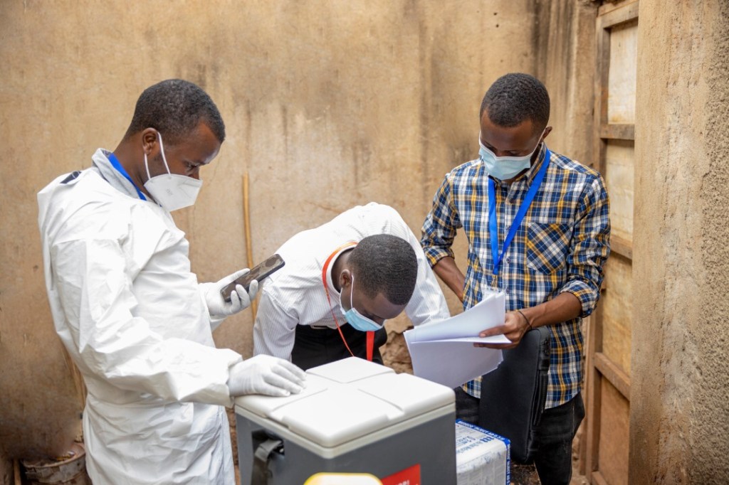 „Lassen Sie uns wissen, ob eine Person ab 60 Jahren eine Impfung benötigt, und wir schicken ein Impfteam“, so das Rwanda Biomedical Centre. Das klingt so leicht und nach „nta kibazo“ – kein Problem. Doch der logistische Aufwand ist enorm. Das mobile Team ist mit Kühltaschen, Spritzen, Schutzkleidung, Impfausweisen etc schwer bepackt unterwegs und laufen zum Teil kilometerweit um die Menschen Zuhause zu impfen.