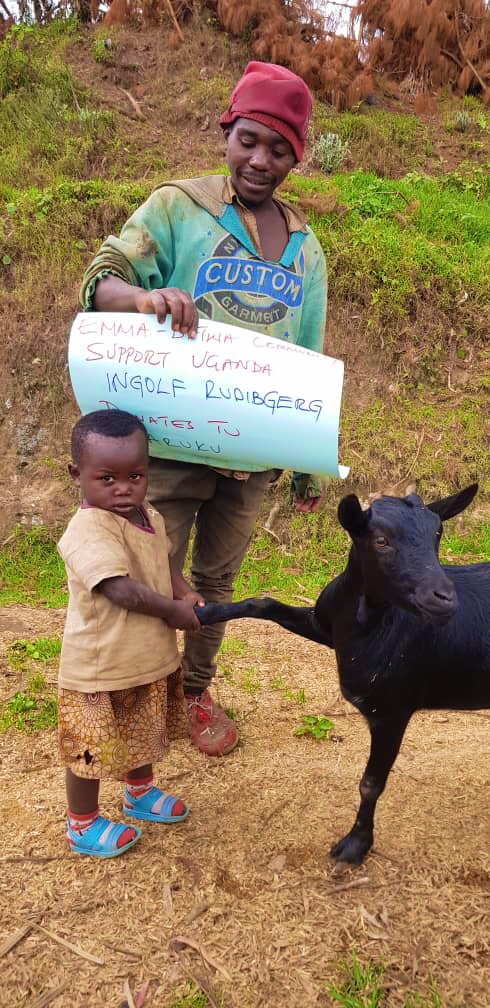 Uganda hat inzwischen einige COVID-19-Beschränkungen nach 42 Tagen strengen Lockdown aufgehoben, so dass es nun möglich war, sowohl Ziegen als auch Nahrungsmittel zu verteilen. Der Lockdown hat die dramatische Lage der Batwa community noch verschärft – sie leiden sehr unter Hunger und keinerlei Einkommensmöglichkeiten.