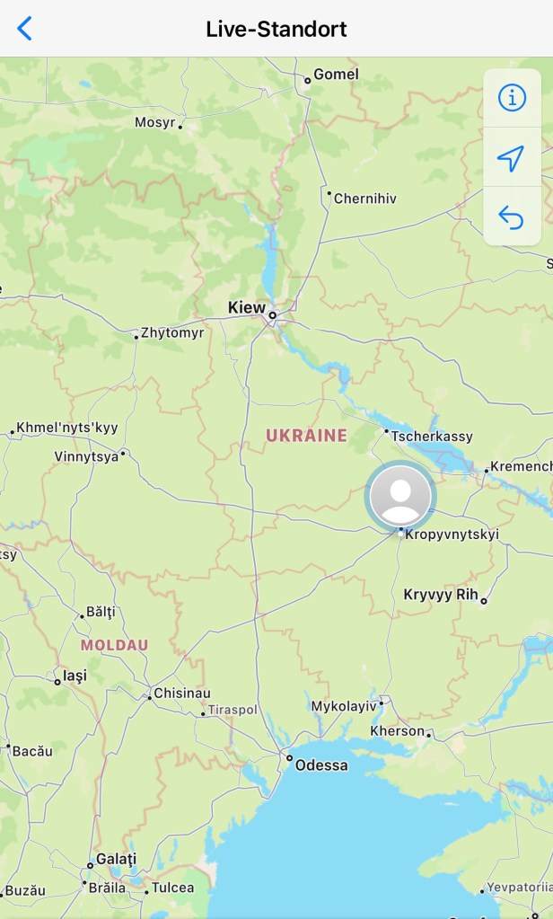 Auf die Frage wie wir helfen können, kommt prompt die Antwort: sie benötigen dringend einen Transport zur Grenze. Zusammen mit weiteren 80 Student:innen harren sie unter südöstlich von Kyjiw aus. (Meinen dieselbe Stadt, nämlich die Hauptstadt der Ukraine. Allerdings werden unterschiedliche Schreibweisen benutzt: die russische und die ukrainische, wir unterstützen die ukrainische Schreibweise). Es herrschen chaotische Zustände und kein Entkommen.