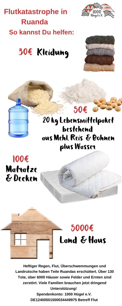 Wer spenden möchte, kann das sehr gerne tun! Lebensmittel, Wasser, Decken etc. werden sicher sehr dringend gebraucht. Spenden bitte mit dem Stichwort: Karongi Fluthilfe versehen. Danke.