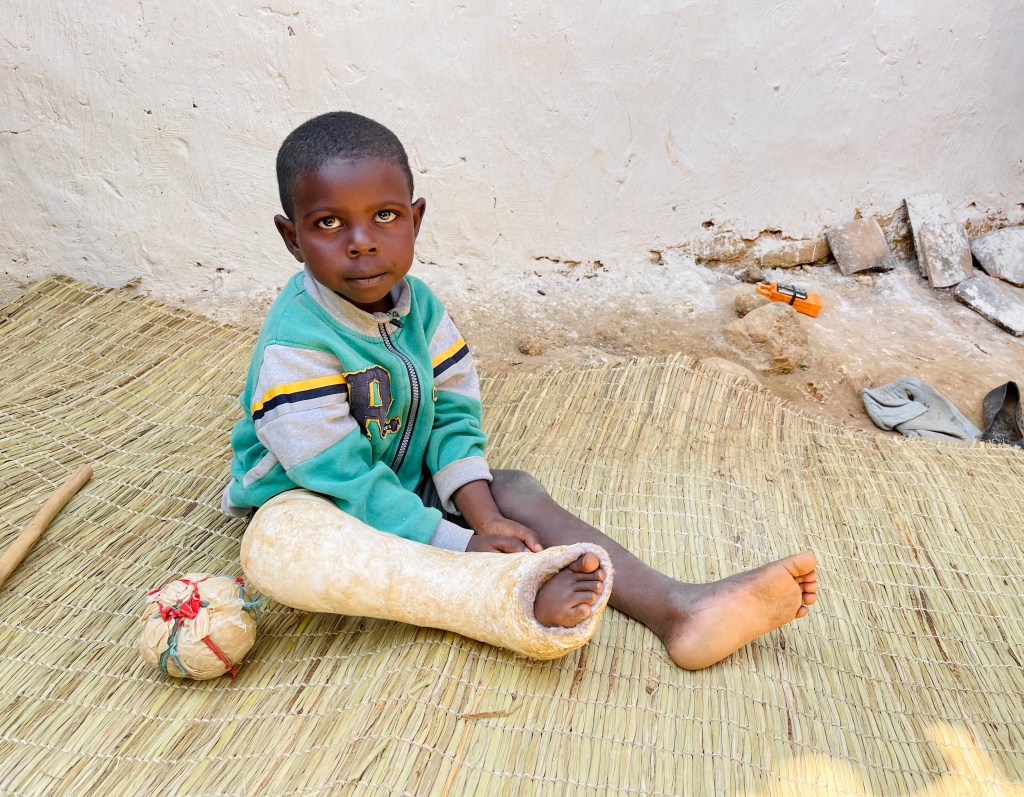 Anschließend ging es mit einem kleinen Marsch über Stock und Stein weiter für eine Nachuntersuchung zu Valentin (6 J.). Valentin hatte einen Klumpfuß, der vor ca. drei Wochen operiert wurde, weshalb er nun das gesamte Bein eingegipst hat und auf dem Boden sitzt. Hesron behandelt ihn und macht Mobilisierungs- und Stabilitätsübungen mit ihm, während Mariette Gespräche mit der Großmutter führt, bei der Valentin aufwächst, seitdem seine Mutter die Familie verlassen hat. Die Dankbarkeit für die Hilfe betont die Großmutter immer wieder, denn schon in einigen Wochen wird Valentin Dank des Eingriffs laufen und vor allem zur Schule gehen können.